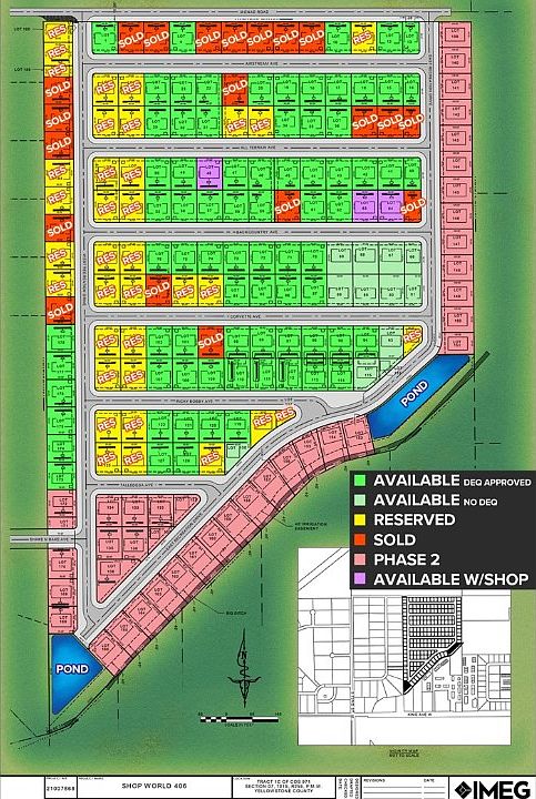 Shop lots in Shop World 406! This lot has MT DEQ SEPTIC and CISTERN approval (Riverstone Health will issue final permit subject to building size and placement.) Natural gas and electric available. Secluded and private location yet only 15 minutes from Walmart and shopping! Security gates and cameras. Dock high as well as pickup truck high loading/unloading area (see photos). Paved roads throughout, mailboxes. $400 annual Property Owner's Association fee. Build your own or Seller will build custom shops - ask agent for process/details. Taxes not yet spread, TBD. All info from 3rd party sources & deemed reliable. Info subject to change & not guaranteed or warranted. Buyer & buyer’s agent to verify all info.