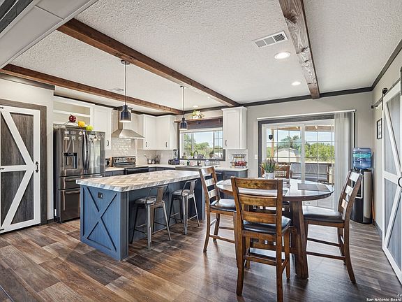 Almost new 4 Bedroom Home on a large 10 acre lot in Elmendorf! Beautiful, modern interior with Open floorplan featuring large island kitchen with sleek black appliances, breakfast bar and wood beam ceiling. Generous sized bedrooms including Large Primary Suite with full bath including a large soaking tub and separate shower. Custom covered deck overlooks the large lot. New storage shed. Conveniently located within a couple of hundred feet from city hall and the police department and just minutes to the heart of Elmendorf and just off Loop 1604 for quick commute times into San Antonio.