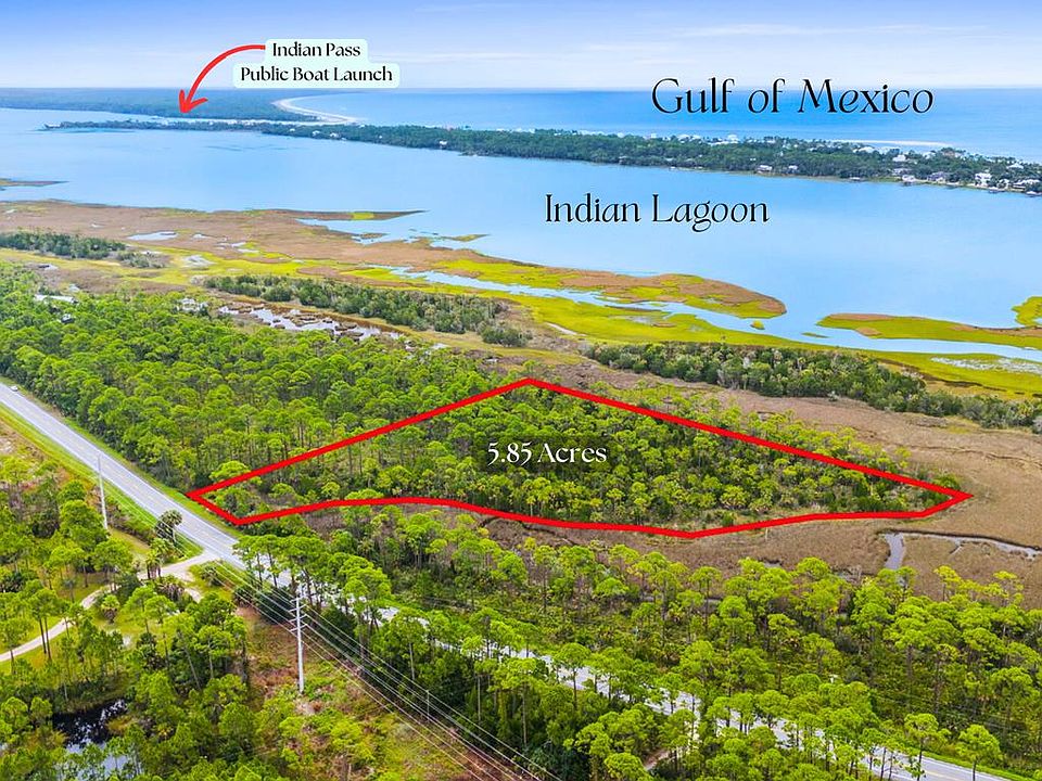 Enjoy the natural beauty of this 5.85-acre lagoon-front homesite, reminiscent of Old Florida's charm. This idyllic location is just minutes away from the world-famous Indian Pass Raw Bar and is convenient to the shops and restaurants of Apalachicola and Port St. Joe. For boating and fishing enthusiasts, the property is conveniently close to public boat launches for access to St. Joe Bay, Apalachicola Bay, and the Gulf of Mexico. Explore this serene and timeless property and envision the possibilities it holds for your future home.