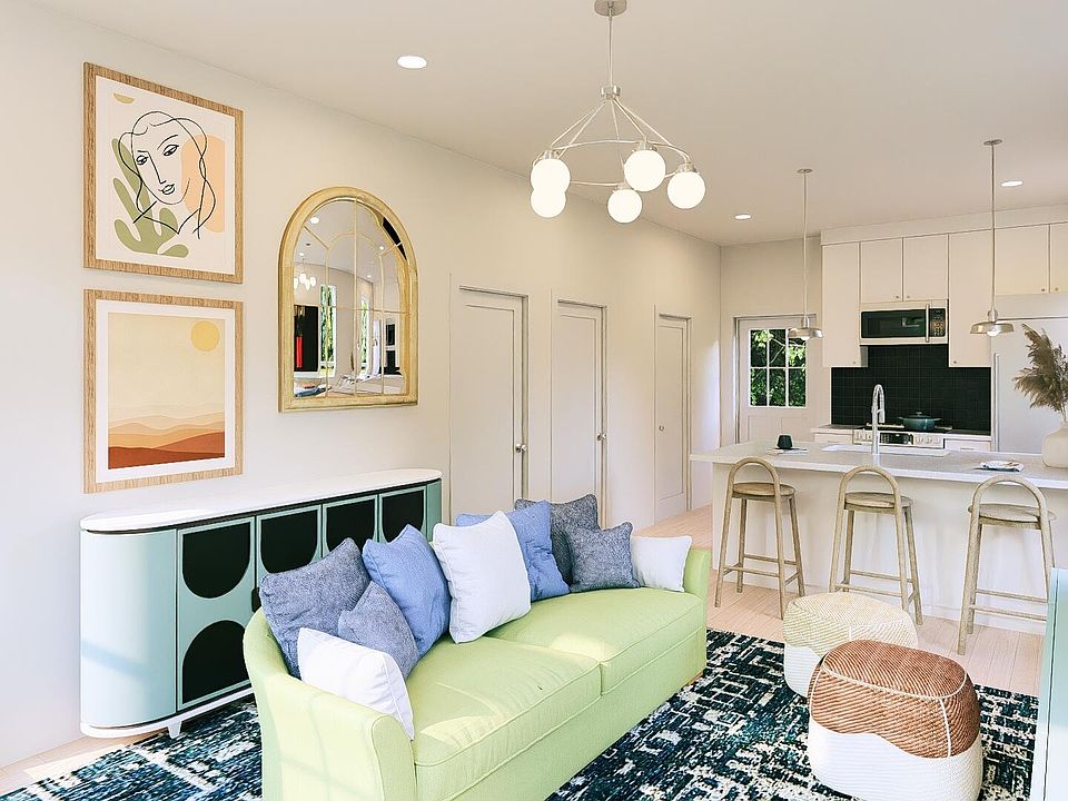 Among its most appealing designs, the listed home proves that affordability doesn't mean compromise. This thoughtfully crafted 2-bedroom, 1.5-bath home offers style, comfort, and function in every detail. High ceilings and abundant natural light create an open, airy atmosphere throughout, while the main level seamlessly connects the kitchen, dining, and living areas—an ideal setting for both entertaining and relaxing.