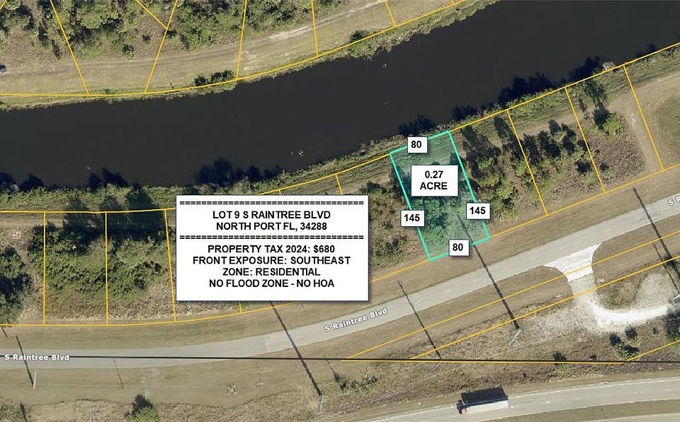 Beautiful waterfront lot in a peaceful and growing area of North Port, perfect for building your future home with serene water views. Conveniently located near shopping, dining, parks, and major roadways. Seller will only sell this lot as a package with the adjacent Lot 8 S Raintree Blvd, offering two side-by-side waterfront parcels ideal for extra space, privacy, or investment potential. Don’t miss this unique chance to own a double waterfront package!