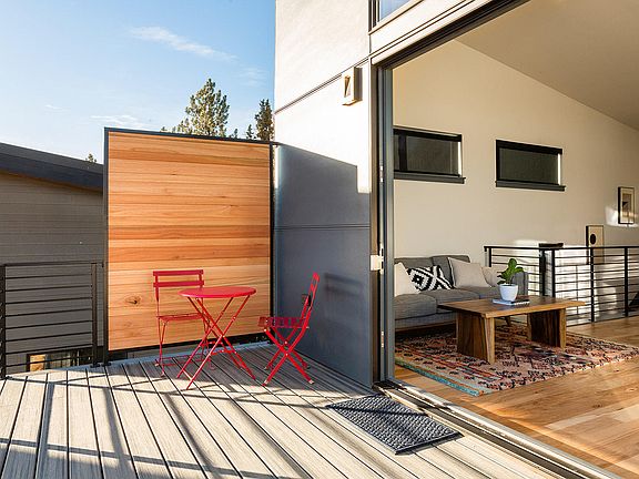 Located on Bend's coveted westside, Hiatus Roanoke features ten 2 bedroom 2 bath energy efficient and beautifully designed homes. Hiatus Roanoke high performance homes are efficiently designed with two stories and a finished garage. The homes feature stunning views of Drake Park, Downtown Bend, Mt. Bachelor and The Old Mill District's iconic smokestacks. These high end homes also include engineered hardwood flooring, quartz countertops and a standing seam metal roof. Join the small living movement with one of the most energy efficient homes on the market. Our homes feature large windows, vaulted ceilings and expansive full glass doors that let the light flood in. The second story deck makes for sweeping views no matter the location. These energy efficient homes are built with non toxic materials and feature a high efficiency HRV clean air exchange system. All this makes these homes 40 -50% more energy efficient than a home built to current building code.