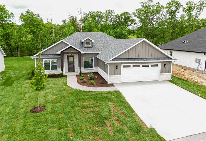 Welcome to your dream home by 'River Oak Homes'! This stunning new construction residence boasts 3 bedrooms, 2 baths, 3 car garage, a fully sodded yard with an irrigation system and nearly 1750 square feet of spacious living space. Step onto the covered porch, perfect relaxation while enjoying your private backyard backing to trees. The modern kitchen is equipped with under cabinet lighting, quartz counters, soft close doors and drawers and a walk-in pantry! Indulge in the luxury of the primary bathroom's walk-in shower featuring an onyx base and elegant glass door, creating a stylish and spa-like atmosphere. Work from home in the convenience of your own dedicated home office. With a builder warranty included, you can rest assured knowing your home is backed by quality craftsmanship.