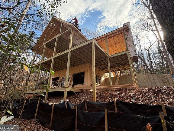 Endless Adventure Awaits where the Heart of the Cohutta Wilderness Area Beats....Quick Paved Access directly into the Largest Wilderness Area this side of the Mississippi). This Very Private Setting boosts 358' ft of "Twists & Turns" of Callahan CREEK frontage along w/a Seasonal Mountain View from the Porch of this BRAND NEW & Exciting Chalet w/Floor to Ceiling GLASS WALL bringing the Forest Inside thru LARGE Fixed Glass Windows. Party Porch Entry Porch w/"Wood Burning" Fireplace (Gas Starter) wraps around to a Large Covered Front Porch in the trees. All Wood Interior (Walls & Ceilings) & "Circle Sawn" Floors. Great Rm Opens up w/a Dramatic "CATWALK" inside the Beautiful Wood Cathedral Ceiling leading to an Intimate Covered PEAK high above the Creek. Great Rm's centers around a Wide "Stone Fireplace" (Vented "Wood-Burner" w/Gas Starter), a "Corner" Dining Area w/Fixed Glass on BOTH Sides & Kitchen w/Custom Cabinetry & Raised STONE Counter Bar (Gas/Electric Range Ready). Main Level Bedroom & Full "Spacious" Bath. Upper Level w/Loft Area, Catwalk & Bedroom Suite (w/Wood Cathedral Ceiling) & 2nd Full Bath (Double Vanity, Large Shower) Finished Terrace Features 9' Ceilings in the Bonus Family Rm w/Wet Bar & Large Fixed Glass Windows. Laminate "Wood Like" floors, 3rd Bdrm , 3rd Full Bath & FULL Size Laundry Rm finishes out this Level. Zoned Electric HVAC, Long Level Driveway Approach leads Deep away from the Road creating a Private Settling on this 1.5 ac lot above the Level Shoreline of 358' of Callahan Creek. Short Term Rentals Permitted, Poured Concrete Retaining Wall. Gentle Area on the back side of the Cabin to access the Shoreline.