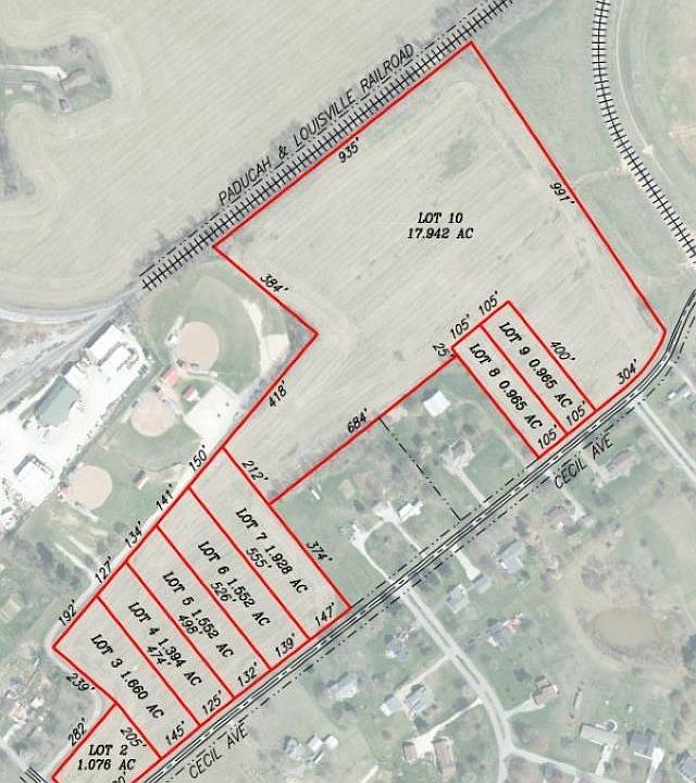 Lot 2: 1.07 acre open lot On Saturday October 25 at 10am Lewis Auction will be offering this 29 acres to the highest bidder. This a very unique property located between the Hardin county industrial foundation on the east side and the Cecilia ball park on the west side with road frontage on Cecil Ave and frontage on the Paducah Louisville Railroad. The property will be offered as a whole and in tracts using the multi par method. Auction Held: Auction held indoors at Cecilia Baptist Church Fellowship Hall 416 E. Main St, Cecilia K