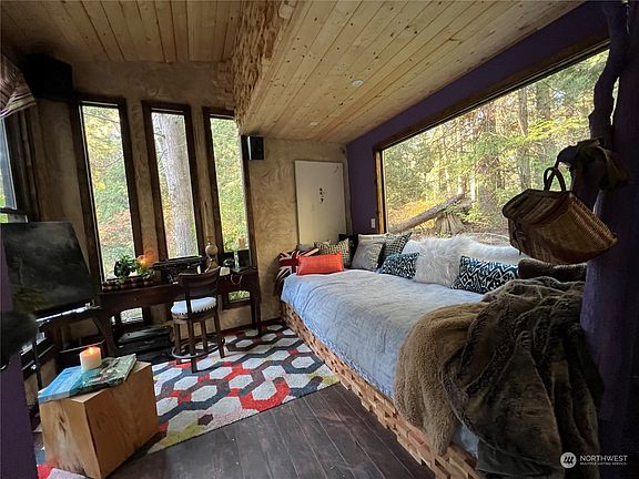 Attention nature lovers, artists & authors! One of a kind retreat on a large treed lot of over 12,000 sq ft! The studio structure is 2 x 6 construction with expansive use of Pella wood windows to bring nature in, a loft area with large skylight for star gazing, and even a wood burning wood stove! Solar panels on the roof drive the electrical system with a bank of batteries & inverter for 120 volt service! Great base camp to explore Point Roberts or read, paint, or start your novel! Add some additional landscaping or just sit around an outdoor fire pit and relax. Very private. Truly a one of a kind opportunity & exceptional value! Won't last!