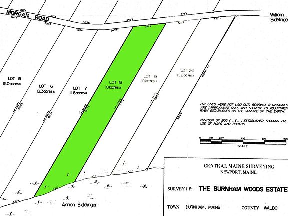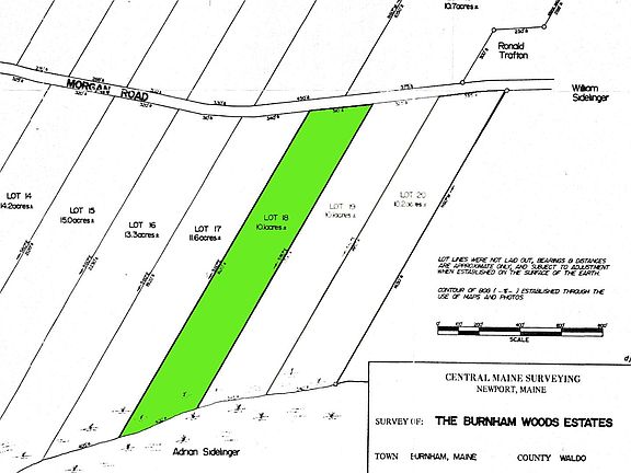 Burnham - 10.1 Acre house lot in a quiet country setting. Tax Map 5 Lot 43. Lot 18 in Burnham Woods Subdivision Recorded in the W.C.R.D. Book 10 Page 57. 20 miles to Waterville. 30 miles to Belfast and the Ocean. 38 miles from Bangor & Augusta.