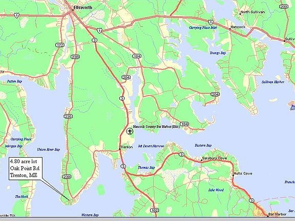 Wooded 4.8 acre lot on the original Oak Point Rd. Quiet setting yet only minutes to MDI or Ellsworth amenities. Soils test done for 3 BD septic. NO restrictions. NO association fees. Mobile homes are OK. Chickens, horses & other farm animals are OK. Located on town maintained, paved road with access to electric & cable at street. Grandfathered frontage. Deep lot allows for many home placement options. Exceptional wildlife abounds. Back of lot abuts acres of undeveloped, wooded land. Realtor owned.