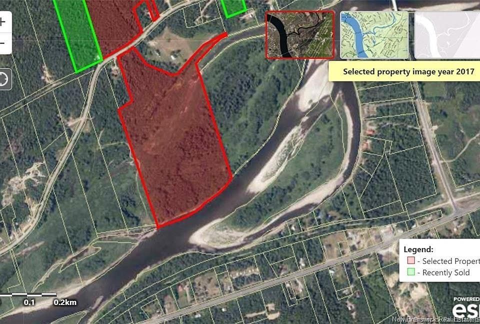 Lovely, private, treed parcel of land that includes TWO brooks to enjoy- one on either side of property. Larger parcel will be subdivided as shown on map. The parcel being sold is on the right on the aerial photo. Place your new home or cottage next to one of the brooks and enjoy the peaceful sounds of running water as you drift off to sleep each night. Or share with friends wishing for camps, cottages or RV's! Create your own private retreat to escape the craziness of city living. This property has a lovely view of the Miramichi River and access to the water to be granted by owner with purchase. Short distance to Pond's Resort & just a few minutes drive to wonderful family owned businesses that provide groceries, eat-in or take-out meals, craft shops and so much more. This area is well known to many outdoor enthusiasts which enjoy hunting, fishing, snowmobiling, kayaking and nearby ATV trails. Located under 1 km from the Porter Cove Bridge. HST is applicable. Vendor will maintain right of way on the west side of the property.