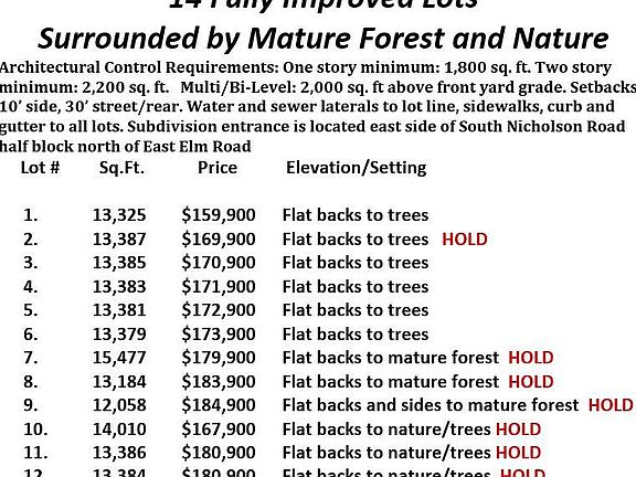 Edgemont Estates is a small community of 14 lots surrounded by nature. Every parcel will back to nature, mature trees or a mature forest. The lots will be fully improved with under ground utilities, water and sewer, curb and gutter and sidewalks. To get to the location Hwy 100 to South Nicholson Road, south past Oakwood Road. Subdivision is under construction on the east side of Nicholson just north of East Elm Road. Lots will be ready to build on fall of 2025. We are currently taking reservations on the lots.