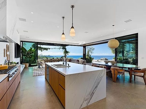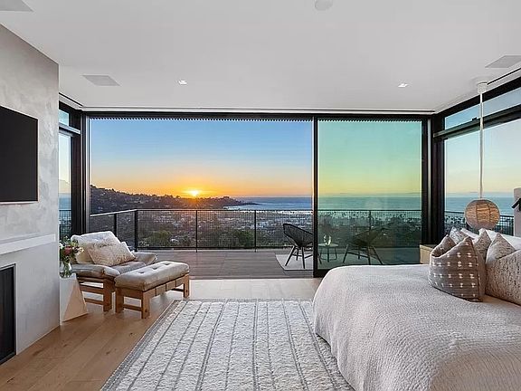 Zen-like tranquility awaits as you step through the grand entryway and lounge-like living space, where warm, organic materials meld harmoniously with European sophistication. Complete with stunning bar, this stylish room leads to a wall of glass that unveils a captivating panorama of the boundless ocean beyond. With ceilings that reach for the heavens, a stunning staircase and a captivating catwalk bridge that gracefully links both wings of the abode, every detail exudes a sense of timeless magnificence. The gourmet kitchen is a masterpiece of culinary artistry where professional-grade appliances, top-tier finishes, a large island with breakfast bar, plus dining table for 8 guests, converge to elevate every gastronomic endeavor. Whether hosting a private chef affair or relishing in intimate family gatherings, the main kitchen seamlessly melds with a rear kitchen, ensuring no desire is left unfulfilled. Adjacent, the family room beckons with plush seating, a large flatscreen TV, ambient fireplace, and walls that fully open to the spectacular outdoor oasis. Gaze upon the expanse of the Pacific Ocean and take in phenomenal sunsets with seamless indoor/outdoor living. Step outside onto a jaw-dropping deck adorned with lush landscaping that rivals the grandeur of a five-star resort. Here, an infinity pool glistens under the sun's radiant embrace, while a bubbling spa offers serenity and rejuvenation. Lounging upon sun-kissed day beds, you'll be captivated by the breathtaking ocean vistas that stretch to the horizon. As evening descends, gather around the flickering fire pit or dine al fresco (seating for up to 12 guests) beneath the enchanting glow of market lights, enveloped in the gentle sea breeze. Additional amenities include a full-scale outdoor kitchen with BBQ, large, lit grassy soccer field, multiple lounge seating spaces with views, and outdoor shower with a serene bohemian vibe. Not to mention, there is a dedicated gym and meditation sanctuary for guests to find their center. Retreat to the sumptuous embrace of the primary suite, where a king bed, walk-in closet, and en-suite bathroom awaits amidst a backdrop of coastal splendor leading you out to a private balcony with forever vistas. Walls of glass frame panoramic coastal views, while the fireplace sets the stage for evenings of enchantment. Revel in the lavishness of the spa-like bathroom complete with dual vanities, a glass-enclosed shower, and standalone soaking tub. Step outside to your private outdoor shower and barrel tub that invites indulgence beneath the open sky. Each additional bedroom suite throughout the residence boasts an ensuite bathroom adorned with glamorous accents, ensuring that every guest enjoys the utmost in comfort and refinement. Elevate your once-in-a-lifetime vacation to the zenith of coastal luxury and embark on a journey of unrivaled sophistication in La Jolla.