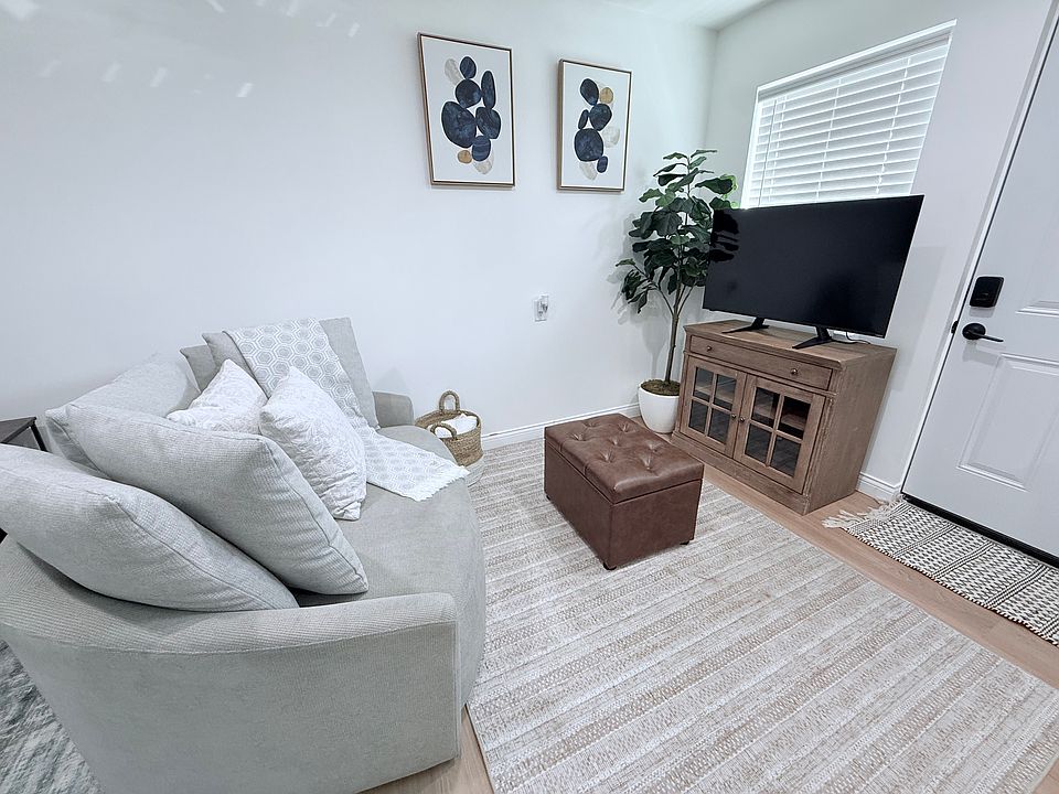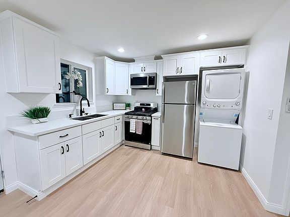 This newly constructed studio 1 bath ADU offers modern living with designer finishes, brand-new appliances, cabinets, double-layer windows, and luxury vinyl flooring, all nestled in a peaceful neighborhood. The open-plan kitchen showcases a sleek quartz countertop, along with a fridge, stove, new highly efficient vent hood and new stackable washer and dryer. The spacious living room features a flexible layout that can easily be customized to suit your needs. Equipped with air conditioning, and an energy-efficient heat pump system ensures ideal heating in winter and cooling in summer.
