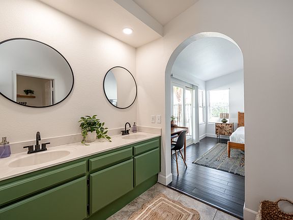 There are 3 separate large sliding glass doors leading into the large and spacious backyard. Kickback and relax at night over the fire pit. Cook up some bbq on the grill and enjoy over the large patio dining table. Or just relax on the separate patio seating area. To the right is the private pool and spa that is gated, making it perfect for kids. The pool and spa have beautiful pearl white pebble tec giving the water an enchanting blue color under that hot desert sun. Everything is automated giving you full control over the LED lights and spa features. There is nothing better than sitting in the spa at night with the string lights around the palm trees on, the LED lights on in the pool, the spa jets running and a nice cold beer in your hand. Seriously you won't want to leave after :)