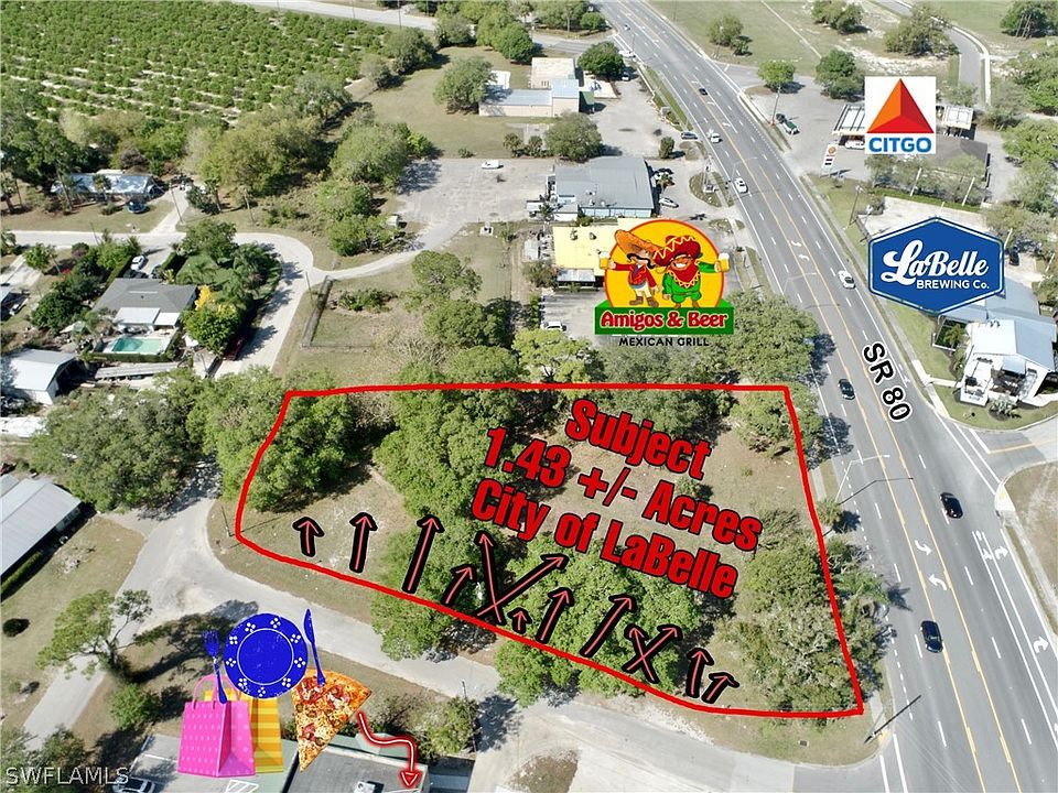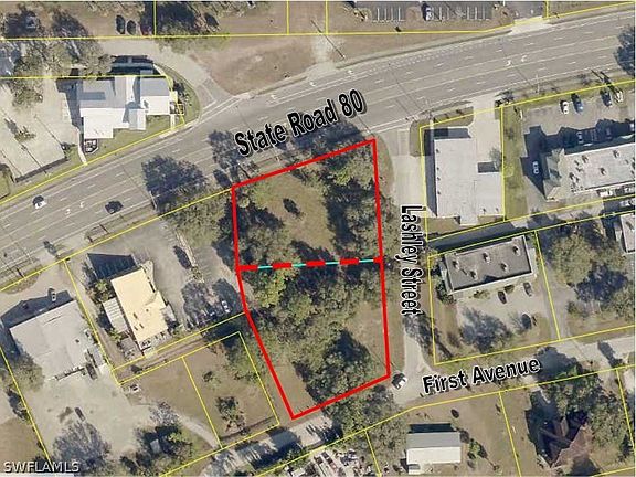 LOCATED ON SR 80 W IN BETWEEN CITY HALL AND FARM CREDIT SHOPPING PLAZA! PRIME—PRIME—PRIME LOCATION NEXT TO AMIGOS & BEER RESTAURANT WITH 191+/- FEET ON SR 80, 300+ FEET ON LASHLEY STREET, AND 130+ FEET ON 1ST AVENUE! Yes—this tract has triple frontage for great ingress and egress and is located in an area where many housing units are already in progress to be built soon on the north side of SR 80, both on and off the river,—and all of them high dollar homes! This is the perfect area to locate your business! Situated in the City of LaBelle with water and sewer utility availability. Property is mostly cleared but features some of LaBelle’s beautiful old oaks. Current zoning is B-2 with many available uses; and with Commercial as Future Land Use Category. A GREAT COMMERCIAL “MAIN DRAG” LOCATION!