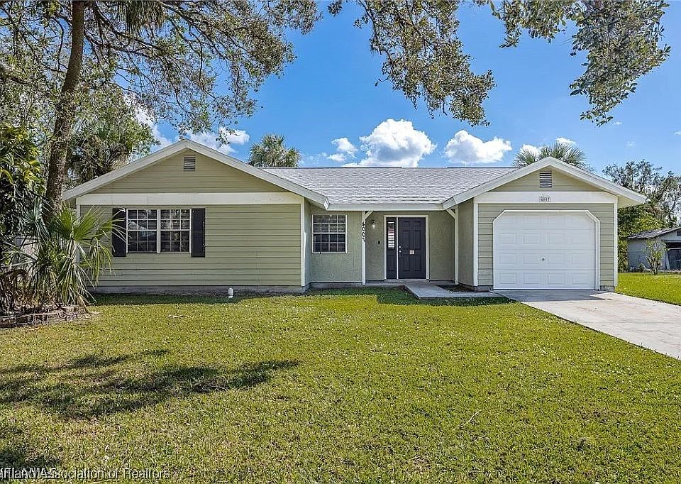 Updated 3/2 home with new roof and new electrical panel. Open floor plan with tile and laminate flooring. In 2021 the kitchen was updated with white Shaker cabinets with Quartz counter tops. Bathrooms were updated this year with tiled showers, new vanities, and fixtures. There is a community pool and clubhouse less than a mile away. All for the low cost of $180 per year. This home is unique because it backs up to 87 acres of wooded area that is owned by Port Labelle Unit 4 Homeowners Association. The one car garage is partially enclosed with one wall and could be used as office, another bedroom or remove wall to have one car garage. Spacious backyard with views of the greenbelt. Gazebo in backyard could be enclosed for shed or leave open for entertaining. Community pool is located at 4051 NE EUCALYPTUS BLVD. Home is on City Water & Sewer! Close and conveniently located to main roads, parks on the Caloosahatchee River, marinas, schools, shopping, and restaurants.