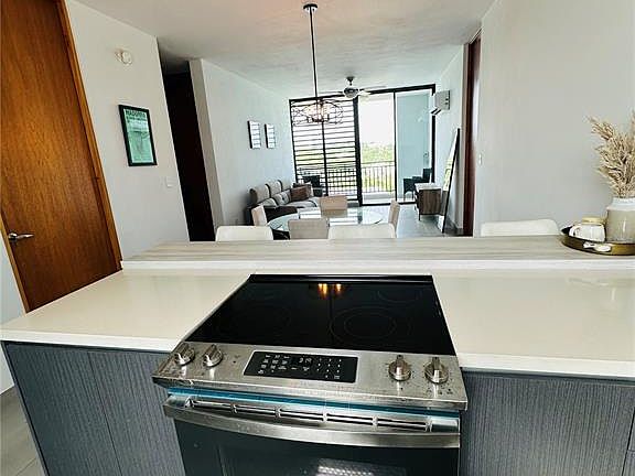 PH apartment with great view from the balcony and a super nice breeze. This apartment offers 3 bedrooms and two bathrooms with open space concept for kitchen and living area. Laderas de Guaynabo is a recent development with great amenities and security, pool, gym and activity center. The apartment has stove with oven, refrigerator, one ceiling fan, water heater and two wall pack air condition units. Two parking spaces and visitors parking.