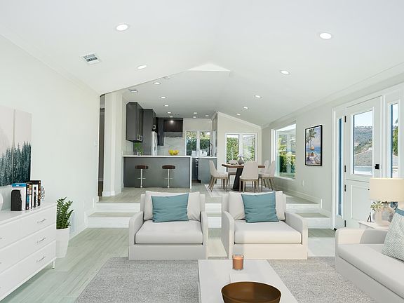 Nestled in the desirable Tree Streets neighborhood, this charming single-family residence features stunning panoramic ocean views from every angle. With 2 bedrooms and 2 bathrooms, this unfurnished home offers a private garage and a spacious terrace backyard, perfect for savoring the coastal breeze. The interior is bright and welcoming, filled with natural light from large picture windows in the living, dining, and kitchen areas each framing breathtaking ocean vistas. Enjoy high-end appliances, including a Gaggenau microwave, Thermador stove, dishwasher, and in-unit washer and dryer, combining luxury and comfort. The expansive deck provides an ideal spot to relax or entertain while enjoying spectacular sunset views and the beautiful scenery of North Laguna.