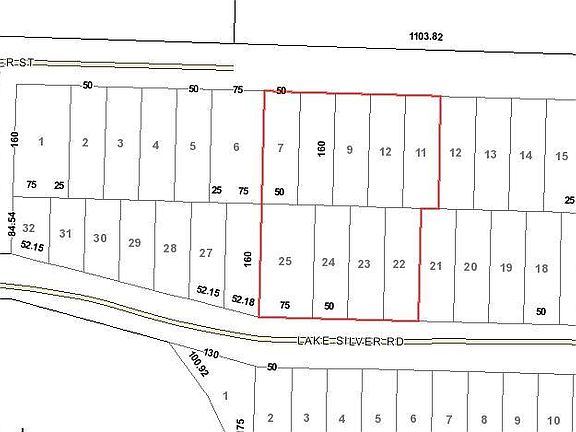 1.75 Acres on paved road frontage. This parcel includes 9 lots in Lake Silver Subdivision. The lots are wooded on mostly level land. Great place to build!Rural Residential Zoning.