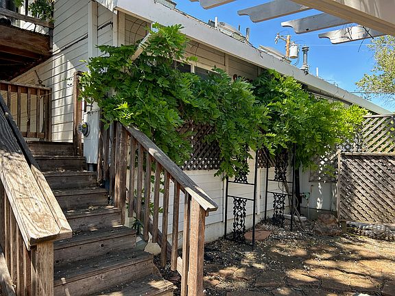 This upstairs, 1bed/1bath, with amazing views of Mount Konocti and the lake, is available now. There are two entrances. From the front of the property you will walk on a stone path until you reach a pergola. Walk under the pergola and up the stairs to an expansive deck. From here you can enjoy the amazing views. Walk through the slider and into a living room open to the kitchenette and dining area. The kitchenette is equipped with a sink and cabinets for storage. On one side of the hallway is an oversized closet. On the other side is a bathroom with a large, beautifully tiled, shower. The vanity has plenty on drawers for extra storage. At the back of the home is the bedroom with a large double sliding closet, skylight, and a door that leads to the back stairs and yard area. Water, sewer and garbage included.