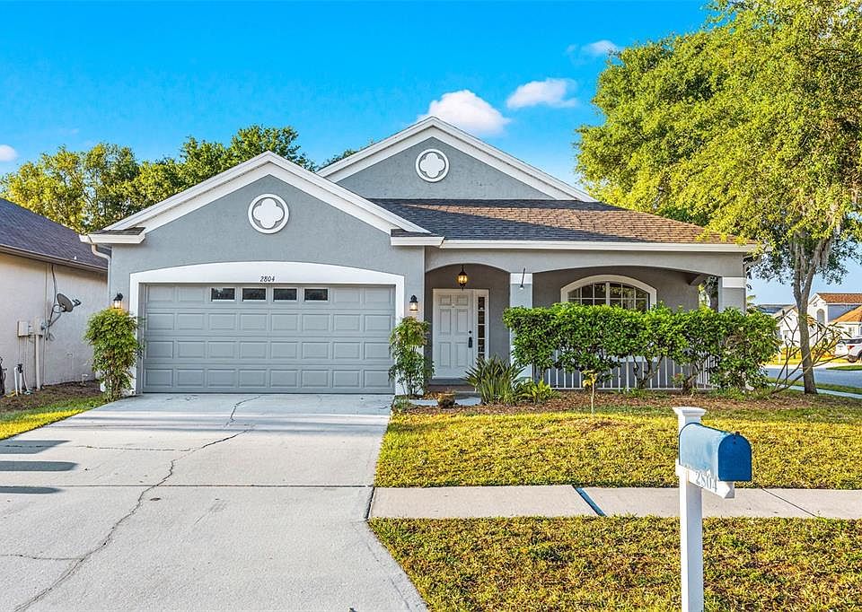 One or more photo(s) has been virtually staged. NEW ROOF in SUNCOAST MEADOWS! This home is located in a very desirable area is ready for YOU! 3 bedrooms, 2 baths, 2 car garage and fenced backyard...all this and more! As you drive up you see the lovely corner lot and landscaping. The exterior was painted in 2021 so that is done for you as well! The covered front porch leads to the front door...as you enter the home you see the laminate flooring in the 20 x 17 living room...no carpet in this home! The kitchen and dining are open to each other and both are spacious! The kitchen is nicely appointed with stainless steel appliances, lots of counter space and a closet pantry. The dining room has a large 3 door slider that leads to the lanai and backyard. The bedrooms are a split plan with the master at the front of the home and the other two bedrooms in the rear of the home. The master suite offers a large bedroom separated from the bath with a pocket door, a HUGE L-shaped closet, dual sink vanity, garden tub, separate shower, linen closet and medicine cabinet. The other two bedrooms are good-sized with ample closets. They are across from the hall bath which has a big 5' vanity, medicine cabinet and tub / shower combo. Head outside and enjoy the 14 x 10 covered lanai and vinyl fenced backyard. There's even a firepit you can enjoy! The community offers a playground, clubhouse and pool. Come and see this home TODAY before someone else grabs it! Roof 2023 / AC 2014 / Exterior paint 2021