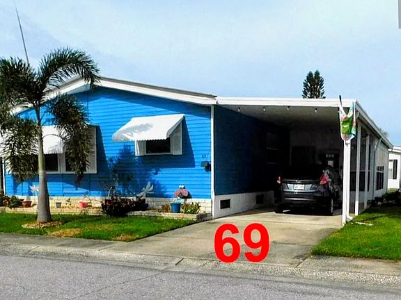 1 BLOCK FROM CLUBHOUSE but here are a few positives on this property. Newer AC unit with a warranty Roof is approximately 8 yrs old The home comes with a couch, love seat, China cabinet and the dining set. I will be going room to room so that as you look at the pictures you can follow me. Let's start from the outside heading into the home. PATIO This is part of the carport. It has glass windows lining the room and it has a built-in shed with a separate entrance into the backyard. The other door takes you directly into the house through the laundry room. LAUNDRY ROOM Once in the laundry room you will see it also has a built-in desk with plenty of storage above and below. It also has storage above the washer n dryer and there is a broom closet to boot. LIVING ROOM The second entrance is at the front side of the home that can open up into this room. There are 6 large windows in this space and when fully opened they allow the sunshine to come flowing in. The couch and loveseat stay with the house KITCHEN The kitchen is at the front of the home. It is a u-shaped room with a small breakfast peninsula at one end. In both corners of the kitchen there is an appliance closet. This is kind of a hiding place for your toaster, mixer, coffee pot or whatever you want to hide away. There is tons of cabinets above or below the counter. DINING ROOM Off the kitchen is the dining room. It comes with a beautiful free standing China cabinet and a dining room set with 4 chairs. GUEST BATH Down the hallway is the guest bath. It has a long vanity, linen storage and a tub-shower combo. GUEST BEDROOM Across the hallway is the guest bedroom. It is large enough for a king or queen size bedroom set. It also has a walk-in closet. MASTER BEDROOM This room with the master bath is across the back of the home. As you can see in the photo there is enough room for a King size bedroom set. It has a large walk-in closet and a second smaller closet. MASTER BATH The master bath has 3 large mirrors and a 3 sided vanity with a sink at each end. There is a separate door with the toilet and walk-in shower are in. DON'T MISS THE OPPORTUNITY TO RENT THIS HOME 1. UNLIMITED WATER & SEWER 2. 2 TIMES WEEKLY GARBAGE PICKUP 3. USPS HOME DELIVERY 4. YARD CARE (MOW, EDGE, BLOWN OFF AREAS) 5. SPECTRUM CABLE & WIFI SERVICE . Other amenities include large, heated pool and hot tub that is available 7 days a week. There is also a plethora of clubs that you can join if you desire. This is a well-established and maintained park one block from clubhouse! This property is centrally located to transit, shopping, beaches and attractions!