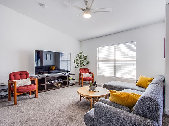 Wake up in comfort & style in this beautifully furnished 3-bedroom, 2-bathroom condo located in a resort-style community. This thoughtfully designed unit features a modern kitchen equipped with granite countertops, ample cabinetry, and high-quality appliances, making it perfect for both everyday living & entertaining. The open-concept living and dining area is filled with natural light and offers scenic views, creating an inviting space to relax or entertain guests. Each bedroom is tastefully furnished, providing a cozy and restful atmosphere. The primary suite includes an en-suite bathroom and generous closet space for added convenience. Enjoy the community amenities, including a pool, a fully equipped fitness center, a playground, a clubhouse, and beautifully landscaped grounds. This condo delivers a perfect blend of comfort, style, and convenience. A utility allowance that includes internet services is provided, and cable services may also be included. Take a look at the 3D tour!