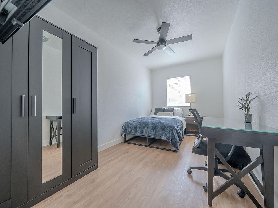 GREAT LOCATION! Minutes from the Las Vegas Strip, Airport, Freemont, Downtown, UNLV, and Amazon! Enjoy living in a newly renovated PadSplit home with a luxury designed kitchen with island, communal lounge areas, assigned Jack&Jill luxury bathrooms 2 people max, and swimming pool. This spacious home is decorated with modern touches while providing the basic necessities and spacious comfortable living. All that's missing is you! The kitchen is equipped with 2 microwaves, sink, oven, stove top, as well as more than 2 fridges. It's the perfect spot for you to cook at home and save money. The surrounding location is close to public transit, making it the perfect place to call home! Move-in Special $0 for first week and $0 Move-in fee! Use Promo Code 4H0610JDS . Newly Renovated Home with modern upgrades! Dedicated Private Jack and Jill personal bathrooms! Room is equipped with new furniture, personal workspace, private fridge, Smart TV, and more!