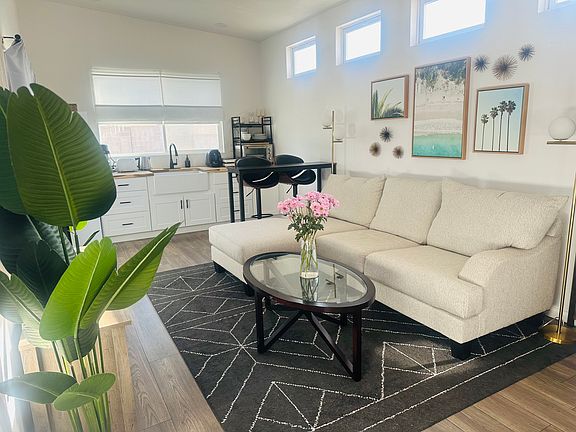 Brand new, fully furnished guest house with a private fenced off yard of its own gated entrance, 11 1/2 foot high ceilings on one side and 9 foot high ceilings on the other. Large windows throughout bring in beautiful natural light. Fully furnished. Walking distance to restaurants and a gym. Starbucks, Walmart, shopping are just blocks away. Individual parking space included. All in one washer dryer in the unit. Enjoy your own outdoor patio. All utilities included (powered water, trash service). This is truly a hidden Gem. Apply now before it's gone.
