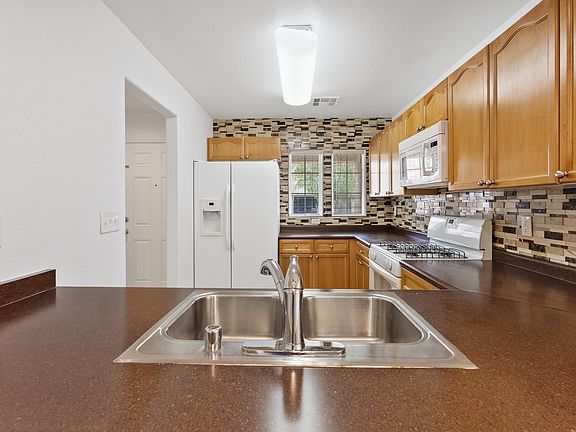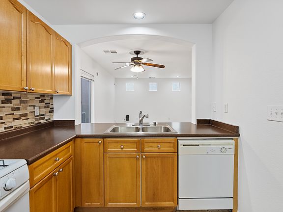 Move-in ready 3 bed/2.5 bath in Northwest Las Vegas. Fresh interior paint and new carpet; neutral tile on the main level with a bright great room. Kitchen offers abundant cabinets, full mosaic backsplash, gas range, and a white appliance package. Spacious primary suite with private balcony, walk-in closet, and tub/shower combo. Community perks: pool, park, basketball courts, playgrounds, and BBQs. Low-maintenance zero-lot-line living, 1-car garage + driveway, close to shopping, dining, hospital, and freeways. Schedule a showing today.
