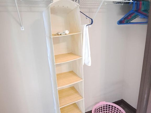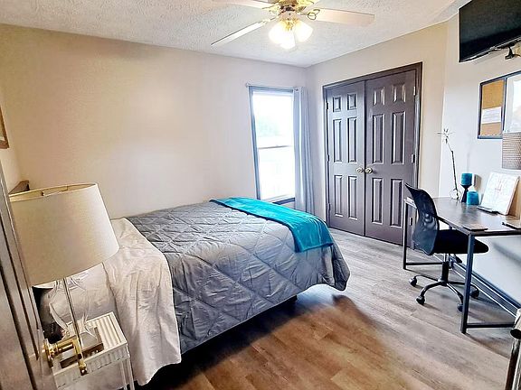 Forget your worries in this cozy space. Bedroom has a Queen size Bed, Desk, Chair, Wall Mounted TV, and Standard Closet. It is located across from the shared full bathroom and on the same level as Launder Room.