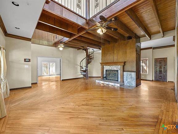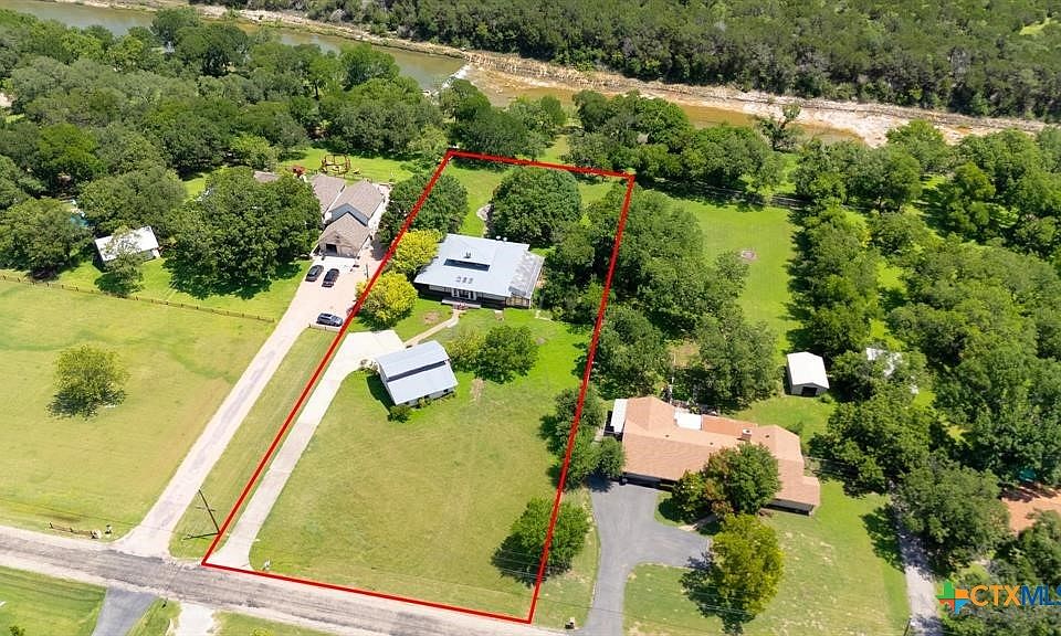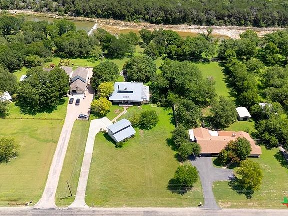 2.02 Acre Estate on the San Gabriel River! Enjoy direct river access right from your own property! This 3,155 square foot home is ready for a complete renovation by Magnolia’s Chip and Joanna Gaines to allowing you to personalize it to your taste. The home features beautiful wood accents throughout, soaring ceilings enhanced with wooden beams, and ample windows that invite an abundance of natural light. The living area features a glass-enclosed fireplace, offering relaxing views of the rear of the property. The generous primary suite is situated on the main level and is equipped with a spacious bath with a walk-in shower, large soaking tub, and a large closet with plenty of built-in storage. Wine Connoisseur? Access the expansive lower-level wine cellar from the dining area by descending a charming winding staircase. This inviting wine cellar features wood-planked ceilings, along with a serving bar and built in seating. Upstairs, discover an cozy living area complete with a fireplace, providing additional living or entertaining space. The grounds are graced with beautiful, towering trees that provide shade, and you can access the San Gabriel River directly from the back of the property, where you can unwind to the soothing sounds of the flowing water. Moreover, the two-car garage features an apartment above, equipped with a kitchenette, living area, bedroom, and full bath—perfect for guests. Estate sale, being sold as-is.
