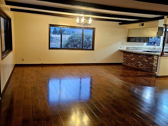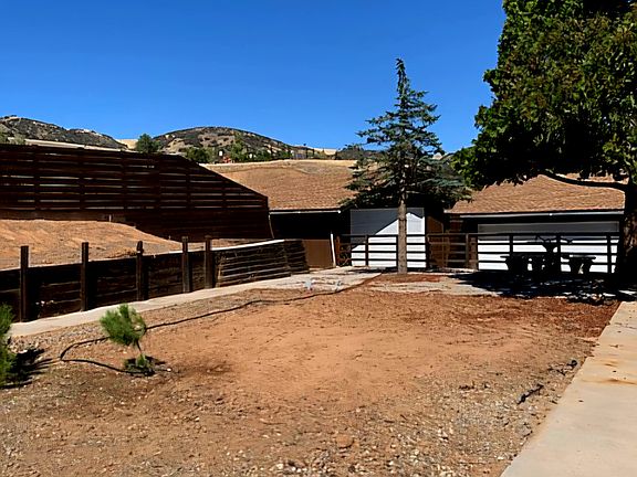 A beautiful ranch style setting on 5 acres with two 8 car garages a Playhouse. The inside has a fireplace wagon wheel windows dinning room kitchen laundry room mudd room 4 bedrooms and 3 bathrooms. The views are fantastic the property has a security gate and is close to freeway