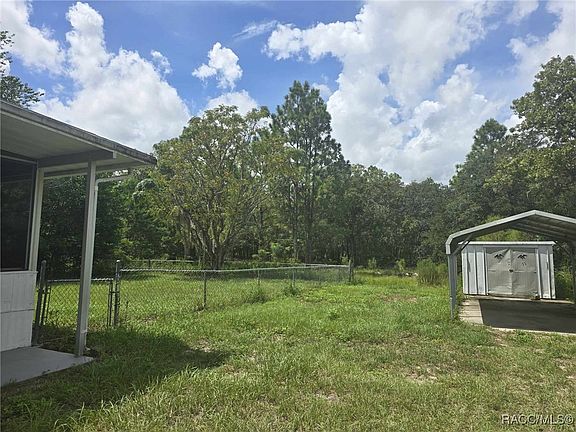 Bring your critters!! 5 Acres of land that abuts the state forest right near the headtrails, with an adorable home! 3/1 mobile with two LARGE screened patios, carport, shed, and quiet! Easy access to schools, shopping, and the Suncoast. Four fenced areas and an open wooded area. Horses, cows, goats, chickens, Emus, Llama, giant tortoise, piggies....whatever you got! This property is just near The Withlacoochee State Forest with miles of hiking and Horse trails!! Peaceful place right next to nature!! Two year old septic tank and drain field. Roof less than 10 years old.