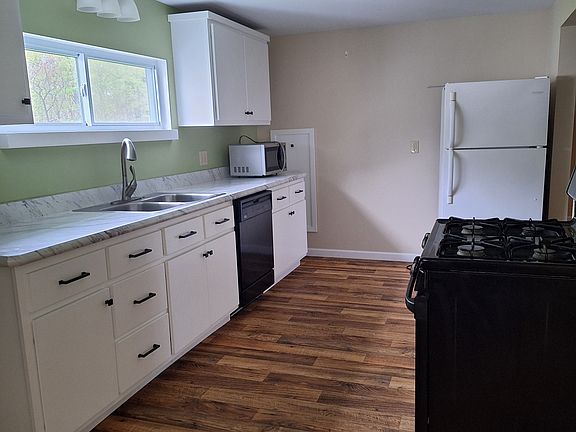 2 bedrooms, living room with hardwood floor, large dining room with plenty of windows, kitchen with stove, refrigerator and dishwasher. Washer and dryer in basement. Vehicle parking in driveway. Small shed for storage.