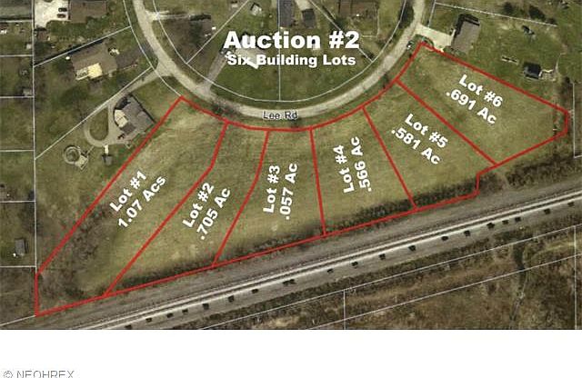 Absolute auction, all sells to the highest bidder on location, FRIDAY - JUNE 26, 2015 - 12:15 PM Auction #2 - Six Residential Building Lots with Water and Sewer - Painesville Twp - Riverside Local Schools - Lake County TERMS ON REAL ESTATE: 15% down auction day, balance due at closing. Buyer's premium of 10% to be added to the final bid to establish the purchase price. Any desired inspections must be made prior to bidding. All information contained herein was derived from sources believed to be correct. Information is believed to be accurate but not guaranteed.