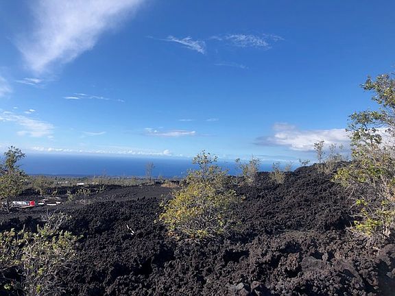 Ready for improvements; One acre open parcel in lower subdivision. Big wide views of western coastline and ocean, with South Point visible from back of acre. Small scattered Ohia trees on rocky lot, with driveway and building pad already in place. Parcel is elevated above lots immediately below it and is about one pole to power that runs along Aloha Blvd. Ocean View Town Center is nearby and local amenities are available: including grocery stores, hardware store, restaurants, post office and more. A great rural area with an ideal climate and affordable prices!