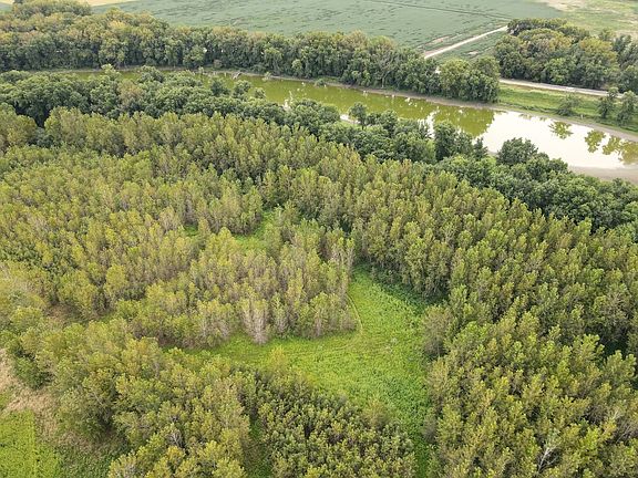 Expansive Slough and Boundaries: The old river channel forms a large slough, defining the property's eastern and southern boundaries and providing excellent waterfowl habitat.