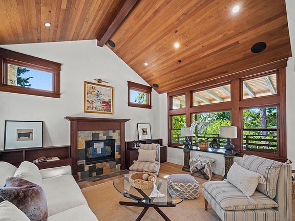 It has it all! This newly constructed 3 bedrooms and 2.5 baths, craftsman style home, is designed by Thomas Bateman Hood. The property is steps from the center of Carmel Village, with views of the water and a long list of amenities, that make this a truly unique property. There is lots of attention to details with coffered and wood ceilings, American white oak wood floors, radiant heating throughout, solar energy system with battery back-up, two Tesla wall charges, lots of built in storage and bonus basement rooms in the oversized garage, outdoor kitchen and the list goes on. Come and experience this well-crafted home.