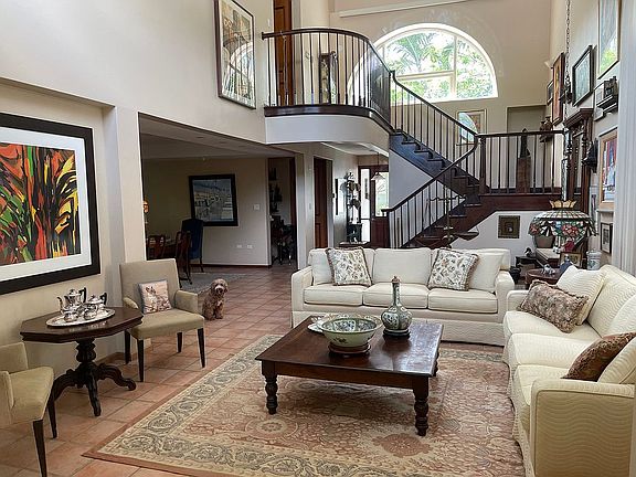 Two story home located in Dorado Beach East, just a golf cart ride away from the Ritz-Carlton Reserve. In addition to a sunlit double height living room, the residence features 3 bedrooms, convertible to 4, 3.5 bathrooms, a spacious kitchen, dining room, family room, a laundry, a north facing terrace and a 2 car and 1 golf cart garage. The residence has 4,020 square feet and a 776 square meter lot with its own private driveway. Dog not included. Showings by appointment.