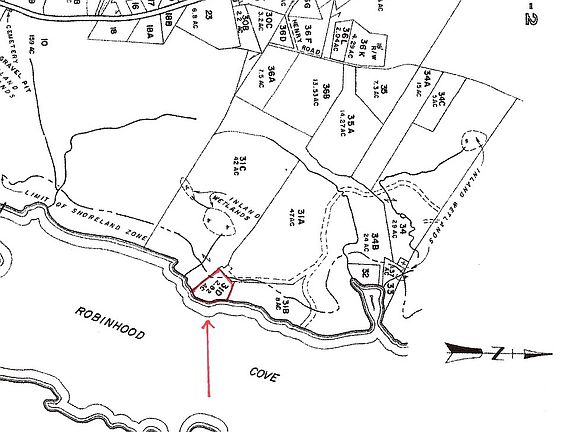 Privacy and water views on shore of Robinhood Cove. The road is new and well developed, easy and straight, not far from town and the marina. Power has been brought to the site and the land is surveyed. A nice trail is marked by orange flags. Views are southeasterly to fantastic open water view. It is that special spot on the coast of Maine.
