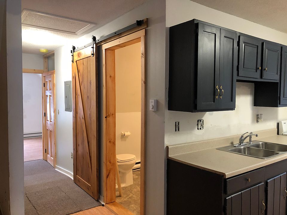 One bedroom, one bath apartment. In town, close to shops and restaurants. Third floor, heat included. Please leave a phone number.