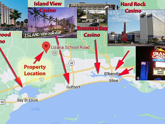 Hilltop Acreage Near Gulfport, Mississippi. 26 acres, 132 foot elevation, covered in pine trees. Beautiful rectangular-shaped site on Lizana School Road, reached by undeveloped 50-foot right-of-way. A perfect private haven. Land only, no house.