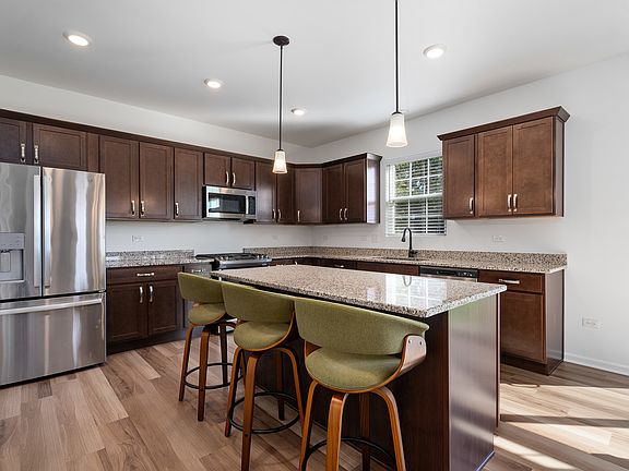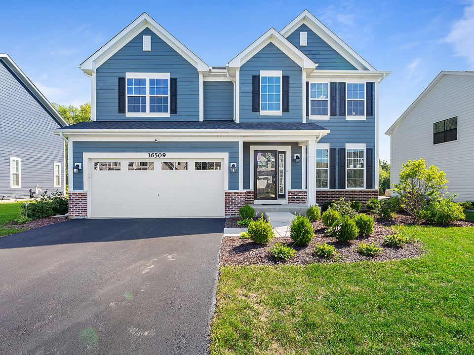 Welcome to this executive-style home situated on a premium lot backing to a scenic walking and bike path. Nearly new and impeccably maintained, this residence combines modern elegance with functional design. The gourmet kitchen is a showstopper, featuring 42-inch rich dark cabinets with crown molding, granite countertops, a large island, stainless steel appliances, and a walk-in pantry. The adjacent dining area offers direct access to the expansive backyard with tranquil views of the path. A convenient mudroom off the attached garage keeps the main level organized. Enjoy gatherings in the sun-filled family room or utilize the versatile front flex room as a living room, office, or formal dining space. Upstairs, a spacious loft provides the perfect spot to relax or can easily be converted into another bedroom. The luxurious master suite is your private retreat with a spa-like bath offering a double raised quartz vanity, water closet, separate shower, soaking tub, linen closet, and massive walk-in closet. The second-floor laundry adds everyday convenience, while bedroom two features its own walk-in closet and is served by a stylish hall bath with soaking tub. Nestled in a friendly subdivision with walking and biking opportunities right out your back door, this home also offers easy access to I-355, making it an ideal choice for commuters.