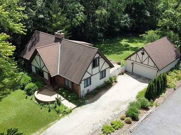 Welcome to this beautifully maintained home, reminiscent of a French Tudor cottage. From the moment you step inside, you can see the pride of ownership with the beautiful finishes and attention to detail. Situated on just under one acre of land, this 4 bedroom, 2 bathroom home provides ample space for relaxation and recreation. At the heart of the home, a double-sided fireplace warms both the living and dining areas, creating an inviting atmosphere for gatherings. A screened-in porch offers serene views of the beautifully landscaped backyard, complete with a large deck and brick paver patio, perfect for enjoying morning coffee or evening sunsets. The kitchen boasts stainless steel appliances, adding a modern touch. The full unfinished basement and oversized 2 car garage provide generous storage space. This home truly blends comfort and elegance, providing a peaceful retreat for everyday living! Home is being sold AS-IS
