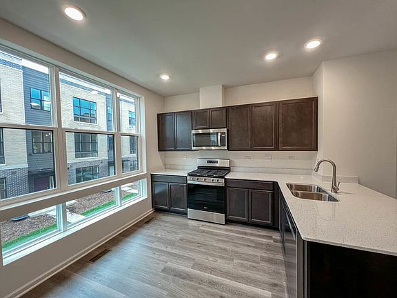 Welcome to your new home at 392 Summit Circle in Lombard, Illinois in our Summit at Yorktown community. This townhome will be ready for a Winter move-in! Enjoy low maintenance living, including snow removal, lawn care and exterior maintenance, allowing you more time to relax and enjoy your surroundings The Monroe floor plan offers 1,661 sq ft of comfortable living space featuring 2 bedrooms, 2.5 baths, a convenient loft, and a finished flex space. As you step upstairs into the main living area, you'll be greeted by an inviting open concept layout with lofty 9ft ceilings, creating a spacious and airy atmosphere. The corner kitchen, complete with soft-close cabinets and wrapped in Quartz countertops, overlooks the dining area and great room, perfect for entertaining or relaxing with loved ones. The kitchen comes with stainless steel appliances. Experience the comfort of a spacious primary bedroom flooded with light from the wall of windows including windows in the walk-in closet! The adjoining en suite bathroom has beautiful Quartz counters atop raised double sink vanity. Also upstairs, you'll find the laundry room, secondary bedroom adjacent to the loft, perfect for a sitting room, office, workout room or playroom with a full second bath and a linen closet. Luxury vinyl plank flooring adorns the entry way, main level of kitchen, dining and family rooms, bathrooms and laundry. This home is equipped with an innovative ERV furnace system and a tankless water heater, adding to the multitude of impressive features and quality 2"x6" construction with Hardie board siding. The townhomes also feature a convenient 2-car garage with a rough-in for an EV charger and a 2-car driveway, providing ample parking space for residents and guests All Chicago homes include our America's Smart Home Technology. Photos are of a similar home and model home. Actual home build may vary.