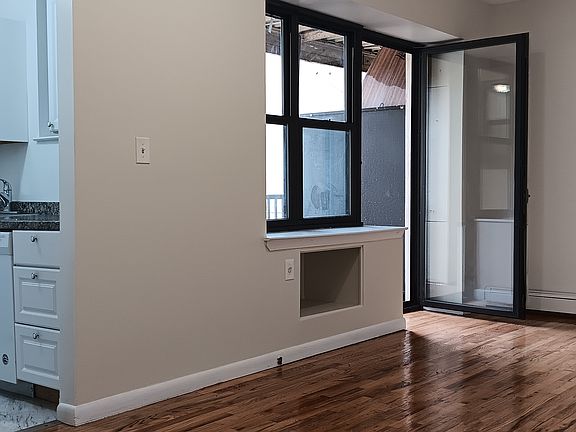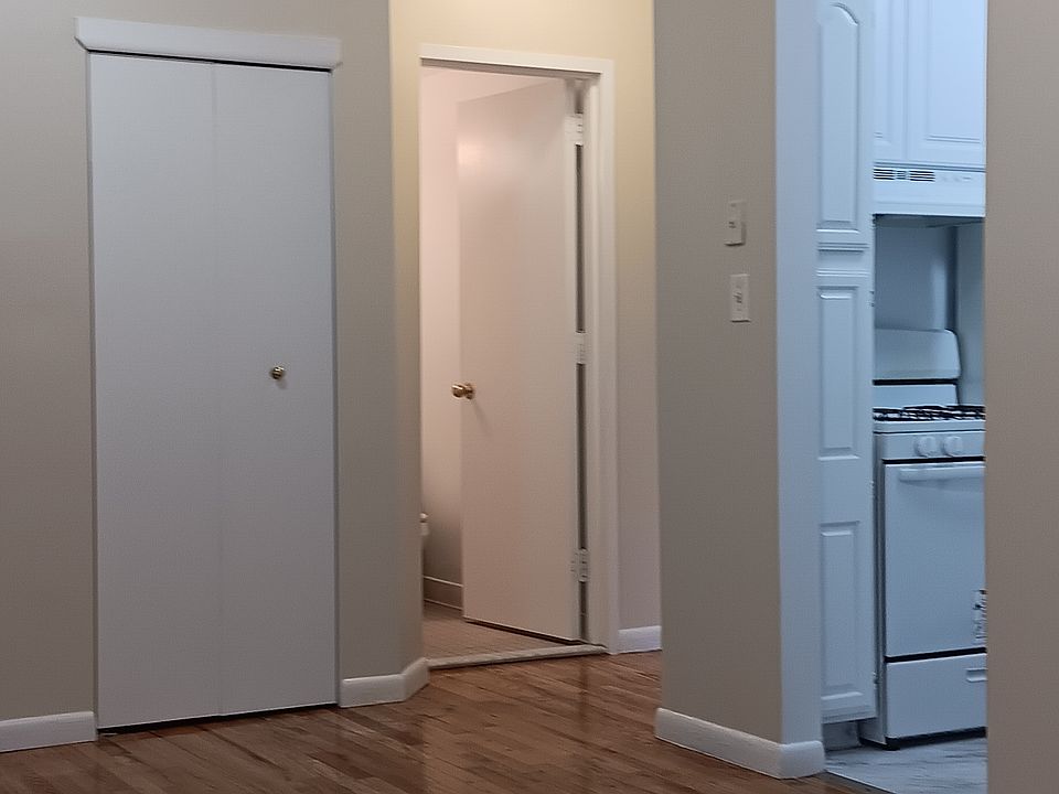 The apartment features a spacious bedroom, a new kitchen with stainless steel appliances and a dishwasher, a large living room, and your very own balcony. Small pets are welcome with a fee. Please note this building has street parking only.