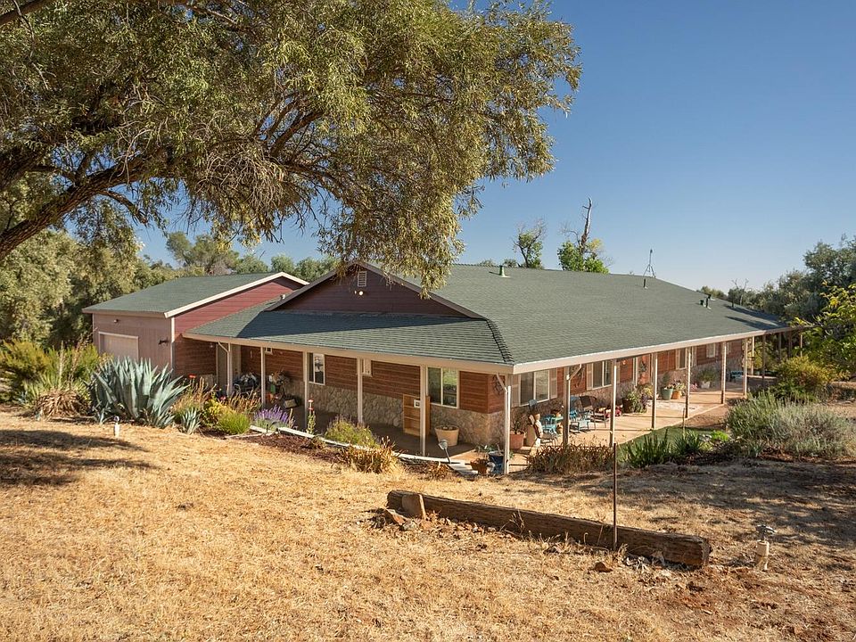 Welcome to your dream home! This stunning custom built 3-bed, 3-bath is a perfect blend of comfort and luxury. Nestled on 5.5 sprawling acres adorned with a serene year-round pond and stream. As you step inside, you'll be greeted by the warmth of laminate wood floors that flow throughout. The inviting living room, features a cozy stone gas fireplace. The spacious kitchen boasts elegant granite countertops, a large island with sink and bar stool seating. Your new dining area is just perfect for those big family get togethers. Enjoy your new wet bar adjacent the living room for all your entertaining needs. Retreat to the master suite, where you will find a huge walk-in closet, a luxurious walk-in shower beautifully tiled to welcome you to your very own spa area. Let's not forget the jacuzzi tub for you to relax and enjoy your spa like setting. Each bathroom in the home offers modern finishes and thoughtful design. The main guest bathroom even features a claw tub. Outside find a fenced-in garden area along with a gazebo and hot tub with views of your park like setting. With fruit trees, and a olive orchard The large storage shed is in addition to the 2-car garage. This home is a true sanctuary. Come experience the tranquil lifestyle you've been dreaming of.