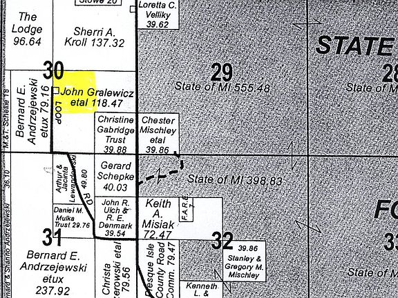39 acres with numerous old historic out buildings. There is an old trailer with well and septic - condition unknown. Hunting on the east half in the cedar groves. Additional acreage available.