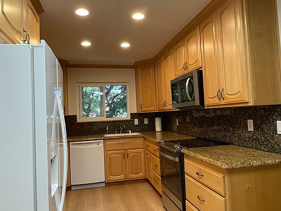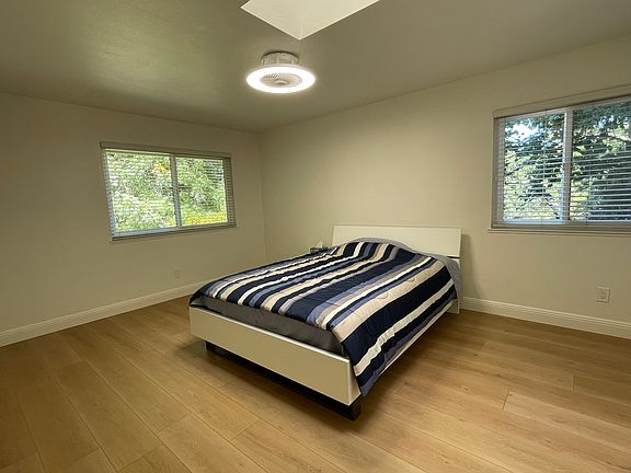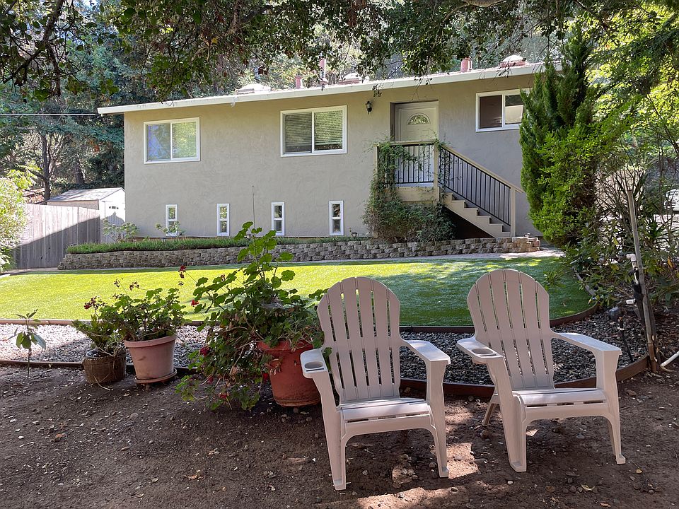 The house itself has 2 large bedrooms and 2 full bathrooms. It has a large kitchen and spacious living/family area overlooking its very own redwood grove in the front yard. The house also comes with a jumbo laundry room and a beautiful, peaceful backyard.