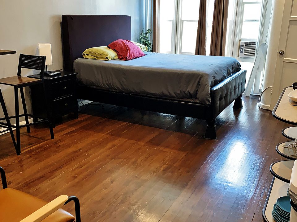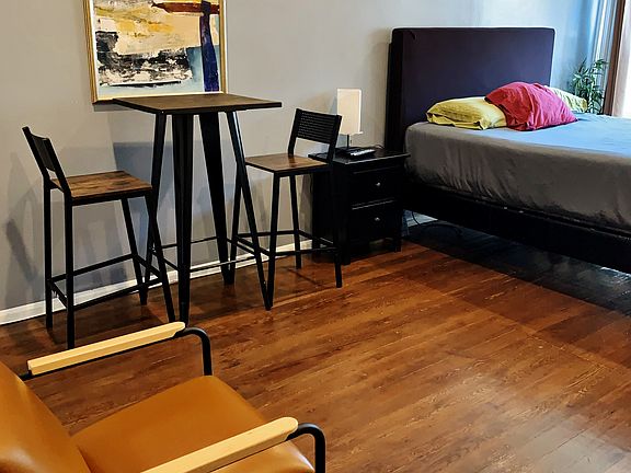 this studio is not furnished - the photo with furniture just for you to see a nice set up of this studio.